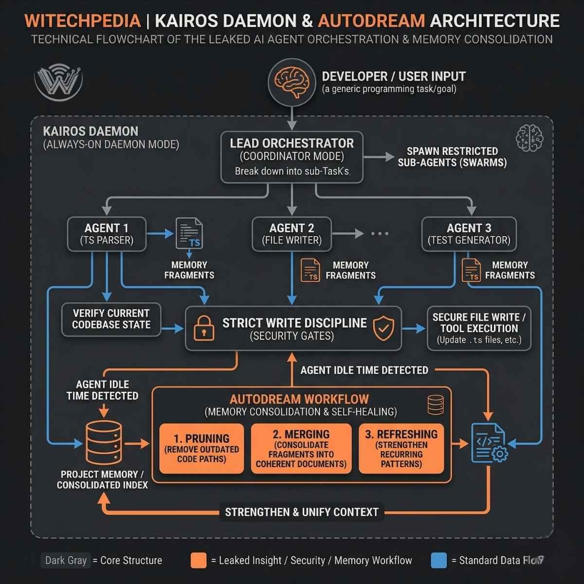 autoDreammemory consolidation process. - An analysis of the multi-agent orchestration patterns used in “Coordinator Mode.”
