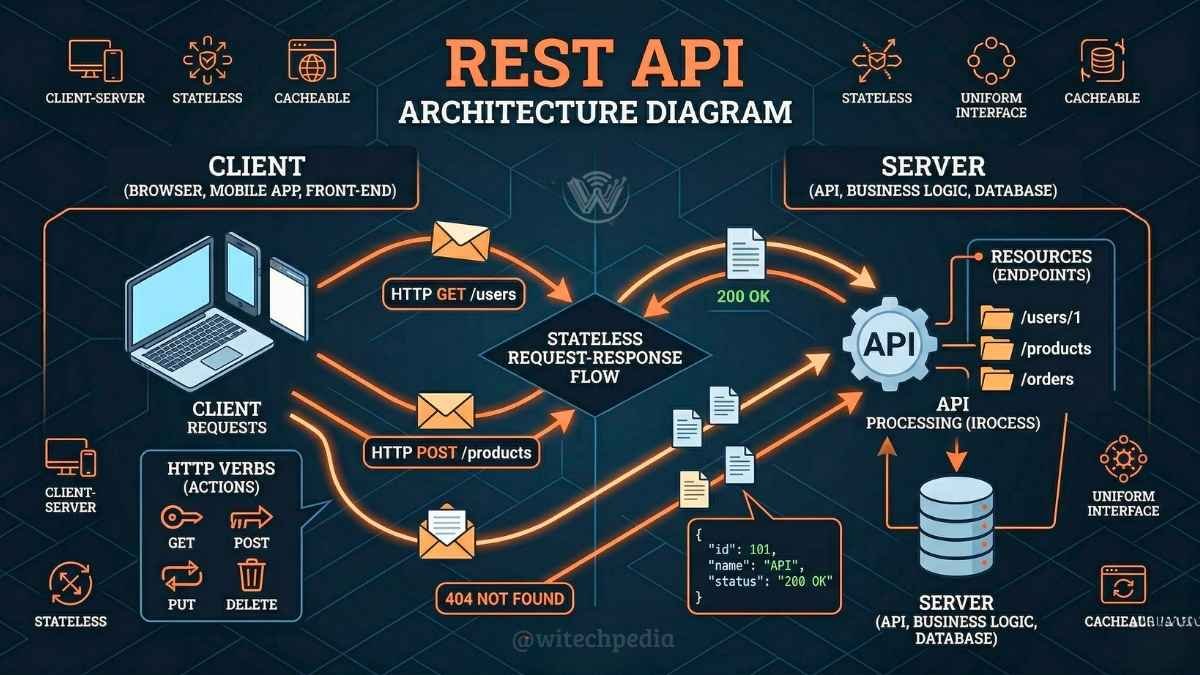At WiTechPedia, we explain technical topics in clear and simple language. This complete guide will help you understand the API definition, how APIs work, different types of APIs, real examples, and best practices.