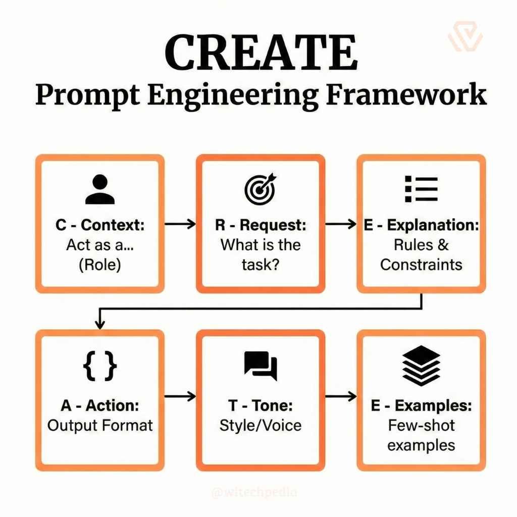 You need a solid prompt engineering framework. We use the CREATE Framework to structure high-level instructions: