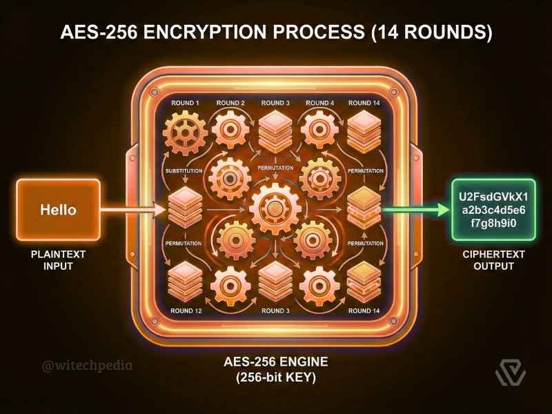 - Visual Metaphor: Think of it like shuffling a deck of cards 14 times in a highly specific, mathematical order that only the person with the “Key” knows how to reverse.